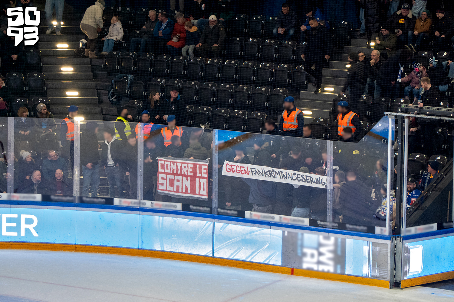 Les Lausannois prennent place en places assises pour manifester contre le Scan-ID à la patinoire de Zug !